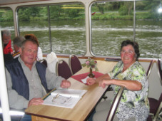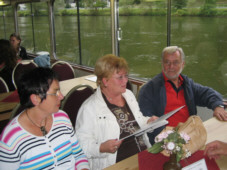 Moselschiff Romantica bestiegen. Auf der 3-stündigen Fahrt nach Klostern Machern mit Schleusendurchfahrt in Enkirch und Umstieg auf das Schiff Mosella wurde viel gelacht, gespielt und gesprochen. Froh