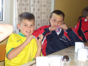 ein ereignisreicher Erlebnistag und absolutes Highlight beim Premiere – Ligapokal Halbfinale zwischen dem Deutschen Meister VFB Stuttgart und Bayern München im Gottlieb – Daimler – Stadion in Stuttgart, der Trainingsbesuch bei TuS Koblenz mit anschließendem Foto – Shooting und Autogrammstunde mit den Stars Du-Ri Cha und Fatmir Vata. Das DFB Fußball – Abzeichen und ein gemütlicher Ausklang beim bunten Abend mit Grillspezialitäten rundeten das Programm ab.