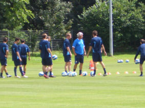 Trainings Besuch bei der TuS aus Koblenz. Die Mannen um Uwe Rappolder zeigten eine abwechslungsreiche, Variantenreiche Trainingseinheit mit viel Kraft und Kondition. Die Jagd nach Autogrammen wurden von allen