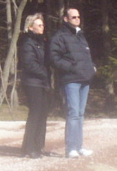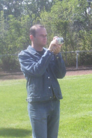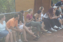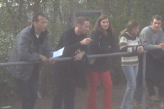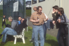 Foto - links: Andy Marx mit Mädels Foto - unten: Peter Lames blickt zur Uhr. Es sind 90 Sekunden gespielt und die Gäste führten schon 1:0.