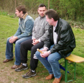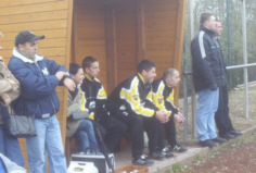 Foto - oben: Treue Fans - auch bei den Auswärtsspielen: Felix, Herbert und Wilhelm.
