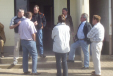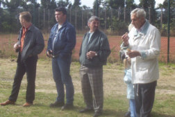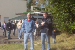 Foto - links: Blick auf die “Haupttribüne” mit Baustelle TURM Foto - unten: “Das geht heute nicht gut aus für uns”: Willi und Ewald (von links)