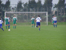 Aus halbrechter Position ca. 35 m vor dem Tor spielt Salvatore einen Frei- stoĂ vor das GehĂ€use der Gastgeber. Mit starker WindunterstĂŒtzung und zur Ăber-
