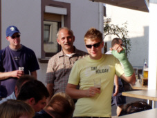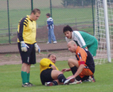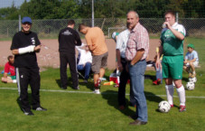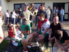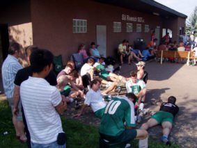 “herumgetrieben”, um den Rasenplatz zu präparieren. SG 2 und SG 1 sollten ihr letztes Saisonspiel bestreiten und danach war ein kleiner Umtrunk mit Imbiß für beide Teams hergerichtet. Da es “um