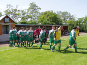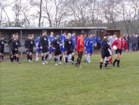 vom Engagement wieder etwas verbessert; zeitweilig spielten wir auch schnellen und ansehlichen Fußball, doch es gab auch Durststrecken, wo wir uns selbst wieder gehörig im Wege standen. Der Schiedsrichter Heinz