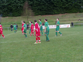 einem längeren heftigen Schauer um 13.15 Uhr kamen dem Platzwart dann wieder erhebliche Zweifel, doch danach blieb es dann trocken. Beiden Mannschaften merkte man die Wichtigkeit des Spiels an; die Anfangsphase