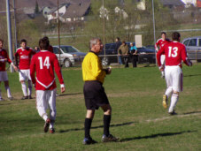(64.) Kurz danach rüde Attacke von hinten gegen Sascha am Mittelkreis und die Rote Karte für die Gastgeber (65.) Nach einem Eckball von Stephan Metzen kommt Sascha zum Kopfball und trifft nur die