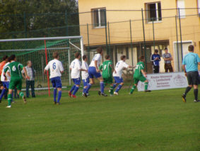 Christopher Ernst aus halbrechts kommt Tim am 11-er zum Kopfball. Den Aufsetzer rettet der Torwart sensationell mit einer Hand. Dann nochmals ein Konter der Gäste nach Tempodribbling über 40 m, doch Sebastian