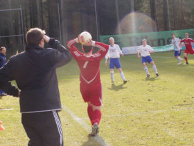 Schuss aus 14 m geht links flach vorbei (29.) Dann sind wir wieder dran. Nach einer Ecke Volker kommt Christopher Gansen zum Kopfball und überspringt 8m vor dem Tor den Torwart, doch der Kopfball geht