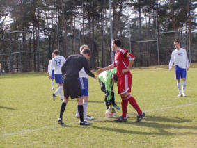 spielten mit vorgeschobenem Pressing, so dass für einen gemütlichen Spielaufbau keine Zeit bleibt. In der 15. Minute dann die erste Chance für die Gäste, die nach einem Konter bis in unseren Strafraum
