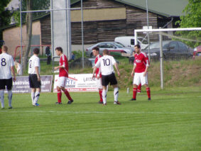 Das Spiel geht jetzt schnell hin und her, die besseren Chancen haben die GĂ€ste. Sebastian rettet dann wieder zur Ecke (57.) und Matthias Weiskopf kommt fĂŒr Normen Klock (70.) Die Vorentscheidung
