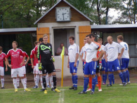 unseren Spielaufbau zu stören. Entsetzen bei Trainer und Spieler unserer 1. Mannschaft als Manuel Hasenstab mit einem Schuss aus 35 m die Unterkante des rechten Tordreiecks trifft, der Ball nach unten auf den