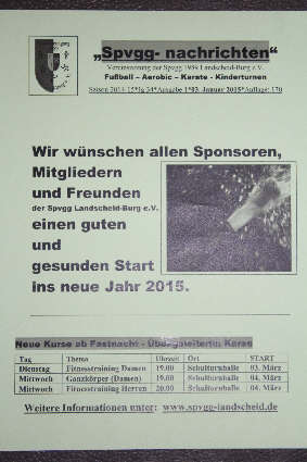 Hallo, die aktuelle Ausgabe vom 03. Januar 2015 wird voraussichtlich für längere Zeit die letzte Ausgabe unserer Vereinszeitung sein.